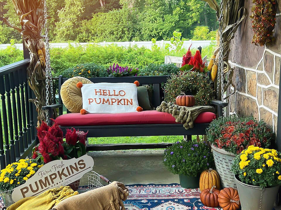 This porch is filled with happy colors!! You can recreate the look at https://www.cottonandcrete.com/about-1