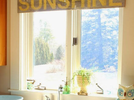 Why not find a really great sign to put above the window. If you can find one that’s a perfect fit or you can cut down to fit, why not make one out of a wood pallet. Write a family motto, funny quote, song lyric, or anything else you want on it.