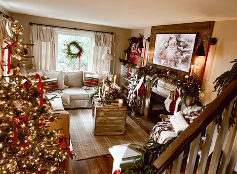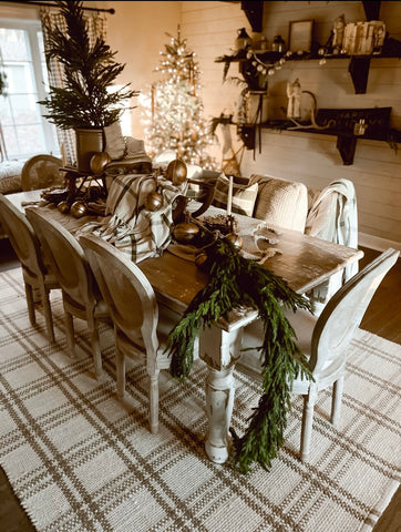 I would have to say that our home has a rustic farmhouse feel. It is a small cottage style home. I love decorating with neutral colors and pops of accent colors throughout the seasons and holidays. I have recently started enjoying thrifting and decorating our home with loved vintage items.