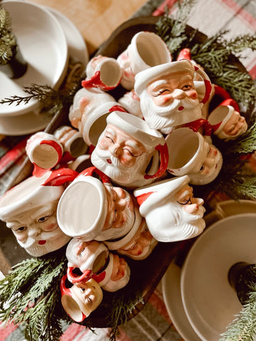 Santa mugs and vintage Santa’s! My newest obsession. For a while I was collecting Rae Dunn. I stopped that about a year ago. I still have many Rae Dunn pieces and enjoy using them in our kitchen, but I have found a new love for all things vintage and antique!