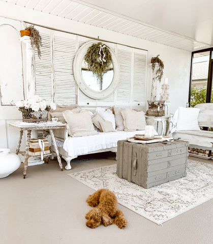We feel incredibly fortunate to have the opportunity to collaborate with Julie, as she offers remarkable inspiration for lovers of neutral vintage farmhouse decor. Her talent for making any item appear beautiful and cozy is truly astonishing.