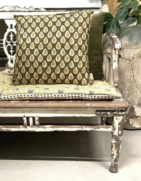Bring a unique touch to your home with this stunning 20″ Green Hand Block Pillow. Hand block printing is an ancient art that produces beautiful, intricately designed pieces like this one. Enjoy the cozy velvet back and rich color–a perfect addition to any sofa, chair, or bed.