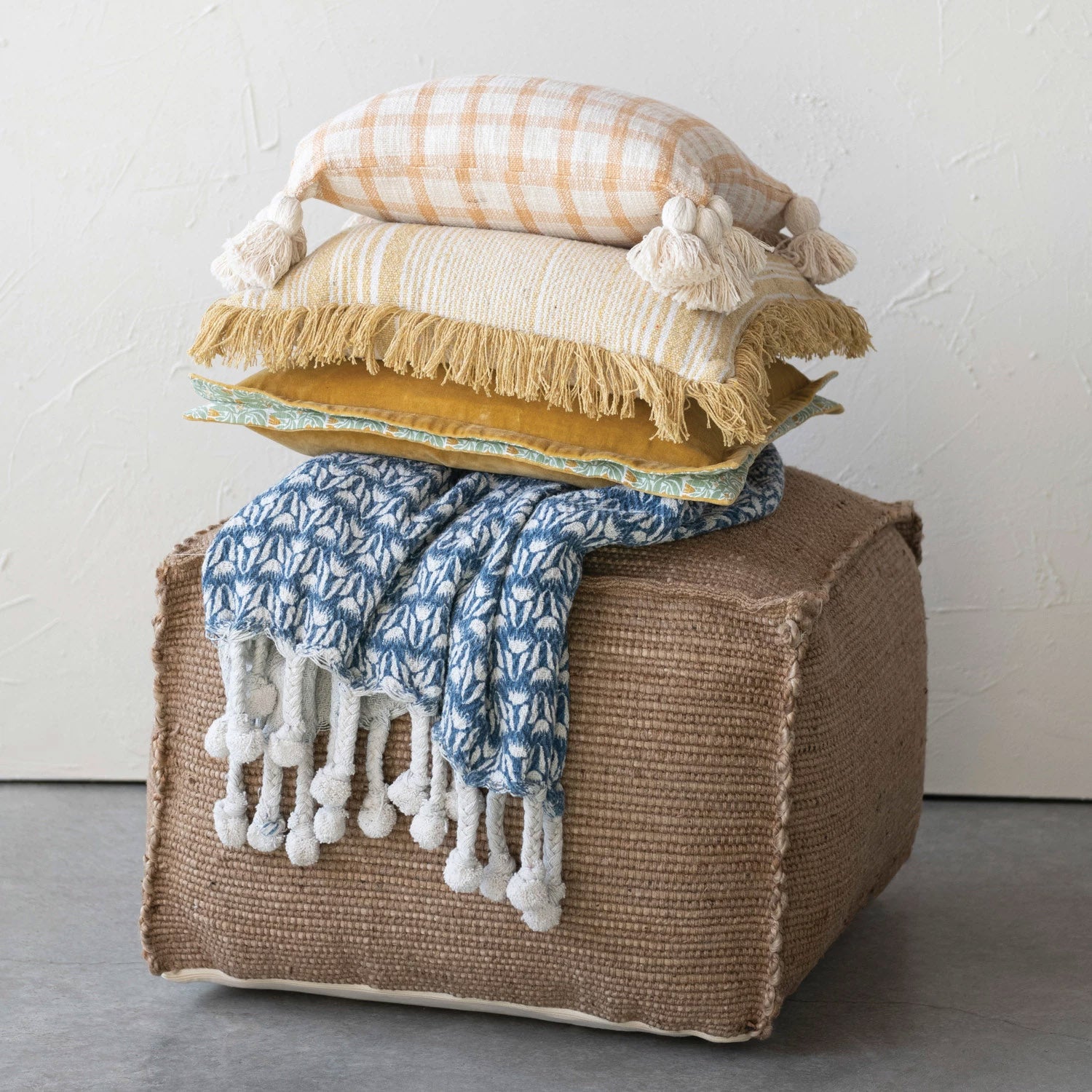 20″ Square Cotton Velvet Pillow w/ Patterned Flanged Edge, Polyester Fill, Mustard Color
