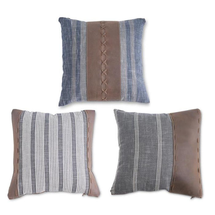 Enhance your home decor with our Leather Trimmed Lumbar Pillows. Made with beautiful, modern designs and stylish leather trim, these pillows add luxury and sophistication to any space. Available in 3 different styles, choose the perfect one to complement your home’s great neutral colors. Elevate your living space with these exclusive pillows.