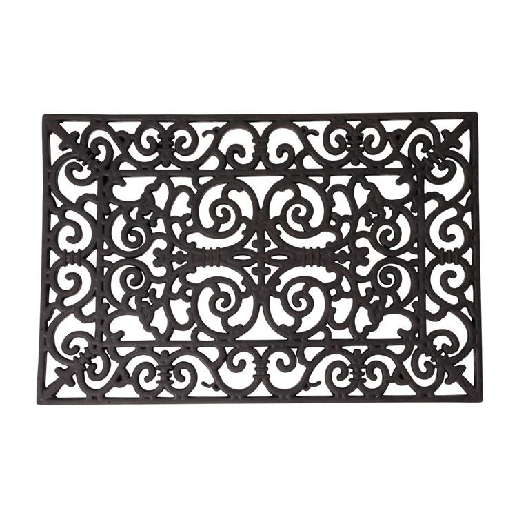 This rectangular rubber mat is beautiful, both for indoor and outdoor use. This rubber mat has a classic Victorian design with gracious curls. The advantage of a completely rubber doormat is that it is easily cleaned by rinsing under a tap or hose. Easy to clean. No slip design.