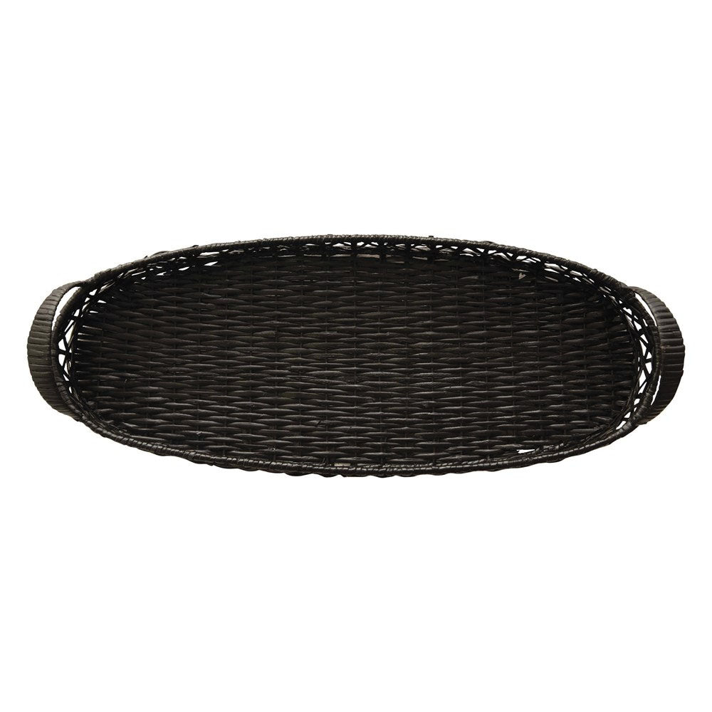 32″ Hand-Woven Rattan Tray w- Handles, Black