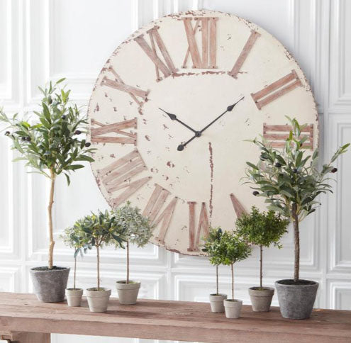 Add a touch of elegance to your home with our 36″ Antique White Wood Wall Clock. This beautiful statement piece is a must-have for any sophisticated interior. Hang it over your fireplace or on a wall to elevate your decor. Let time be the ultimate luxury with this exquisite clock.