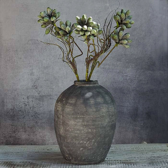 We love flowers that are dramatic yet majestic and this beautiful green thistle stem will seriously up the intrigue in your vases. In a dark, moody palette of greens and hints of purples, try pairing this large spiky flower with some delicate wildflowers or leafy foliage.