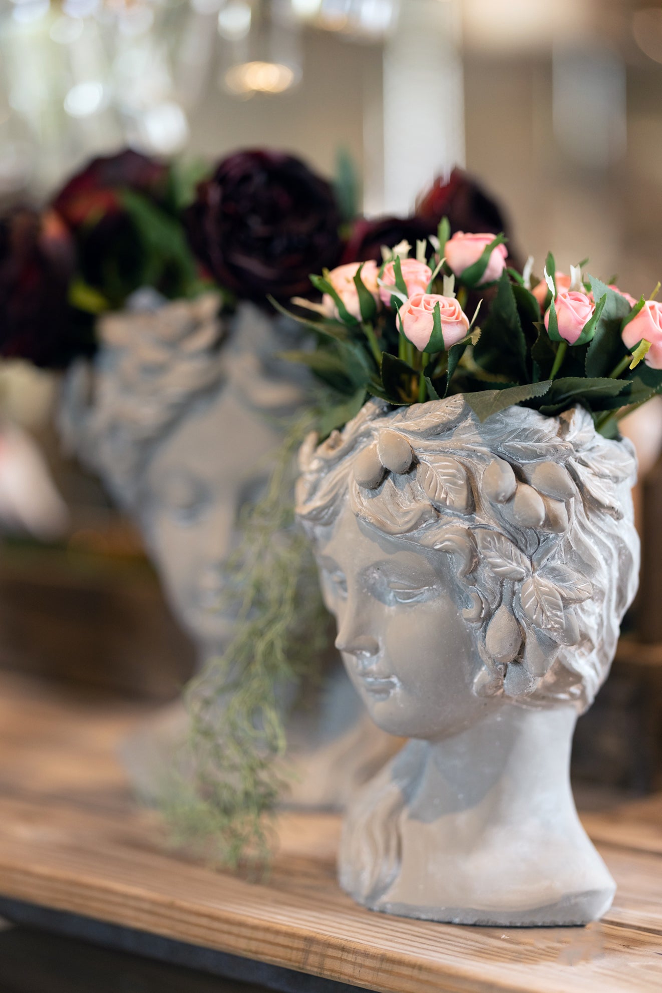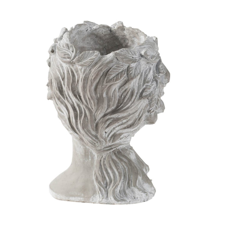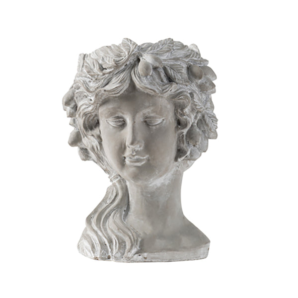 Regal elegance has never looked better, and this classic bust planter boasts old-world charm. Complete with a whitewash stone finish, this head planter is detailed with a fruit wreath. It looks amazing with trailing plants to elevate the lush foliage of the garden.