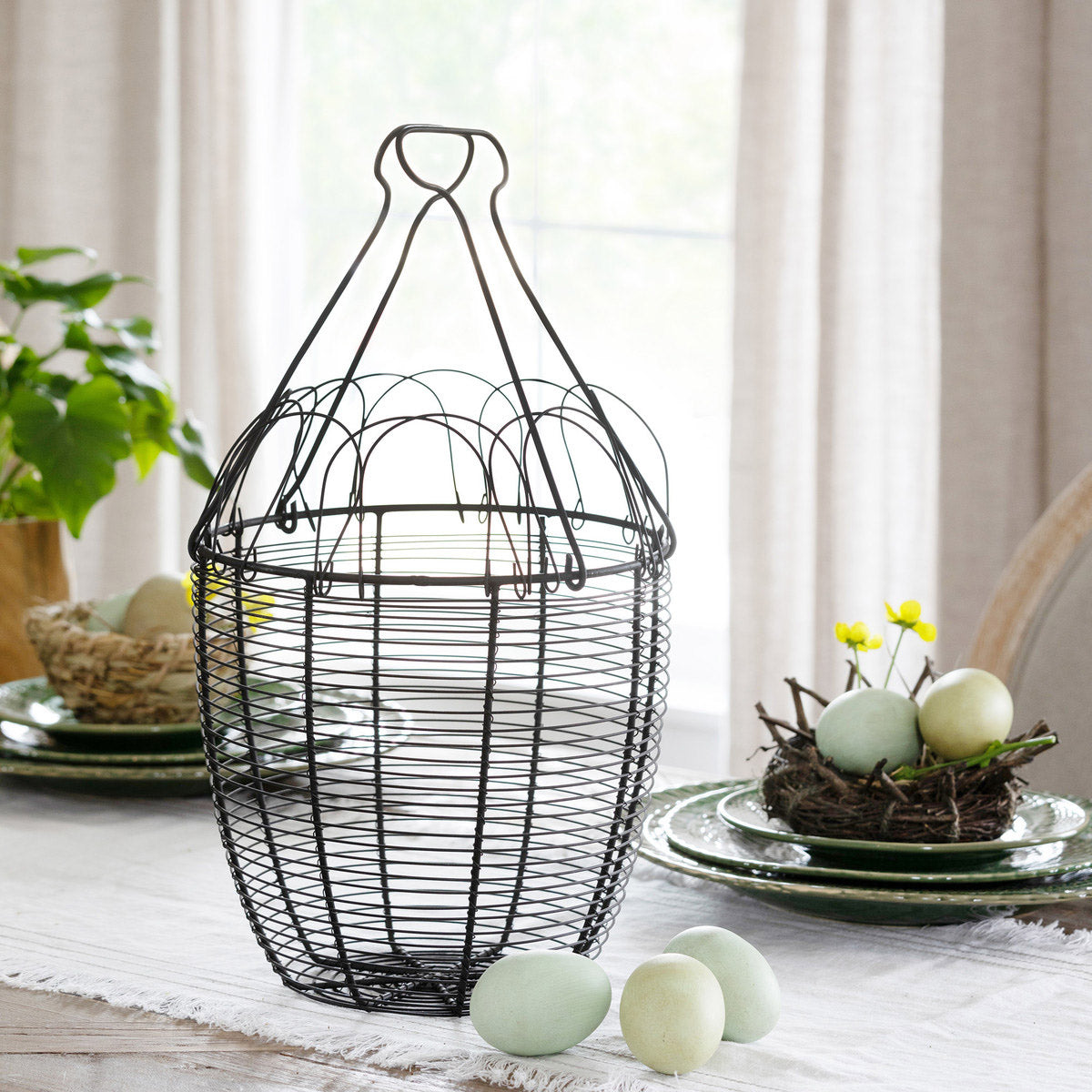 Egg baskets are making a comeback as more and more people are gathering their own fresh eggs. Designed to store the fragile food safely, utilize the Folding Iron Egg Basket during the collection of your eggs. Then you can wash and drain them in this same container, minimizing loss due to breakage that would be caused from transferring the eggs multiple times. Beyond the practicality, the Folding Iron Egg Basket is a cute way to store organic eggs until you are ready to cook them.