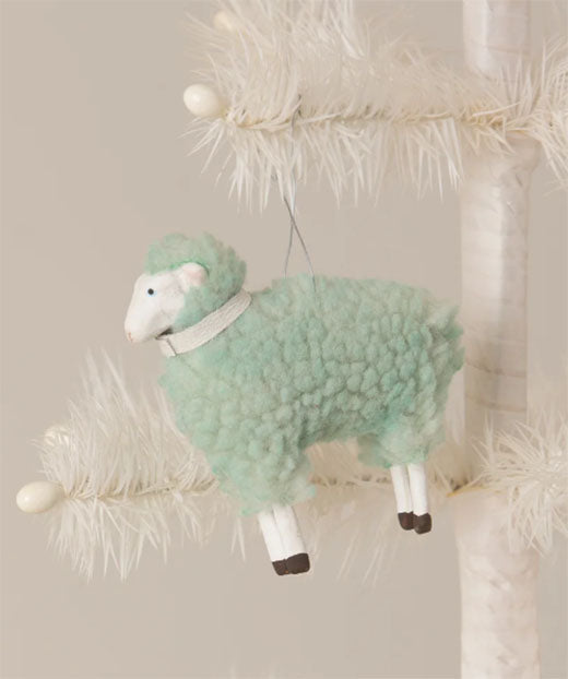 It’s so fluffy! Inspired by antique German sheep, this fresh take ornament with soft blue wool will bring the feeling of Spring indoors.
