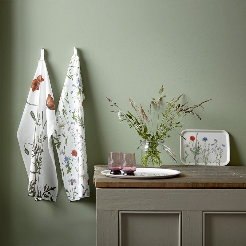 Adorable tea towel with beautiful flowers manufactured in Europe from 100% organic cotton. Small loop attached for hanging.