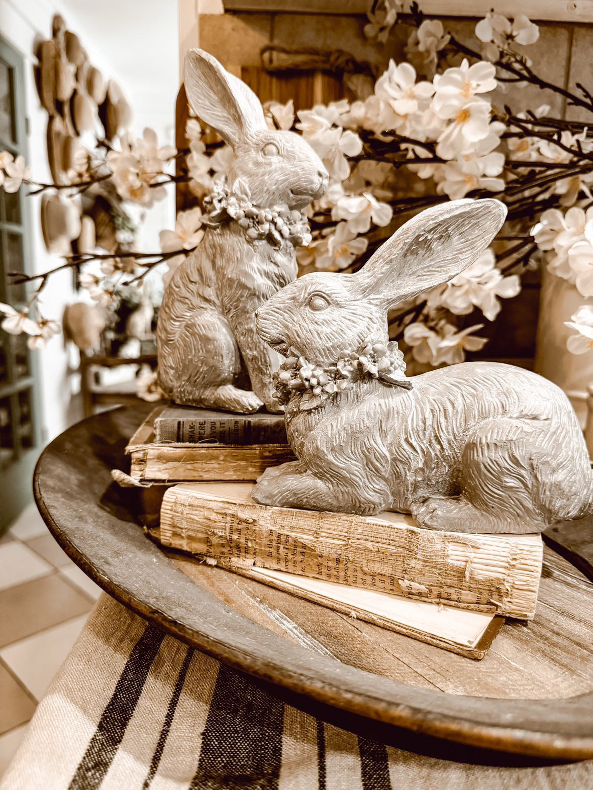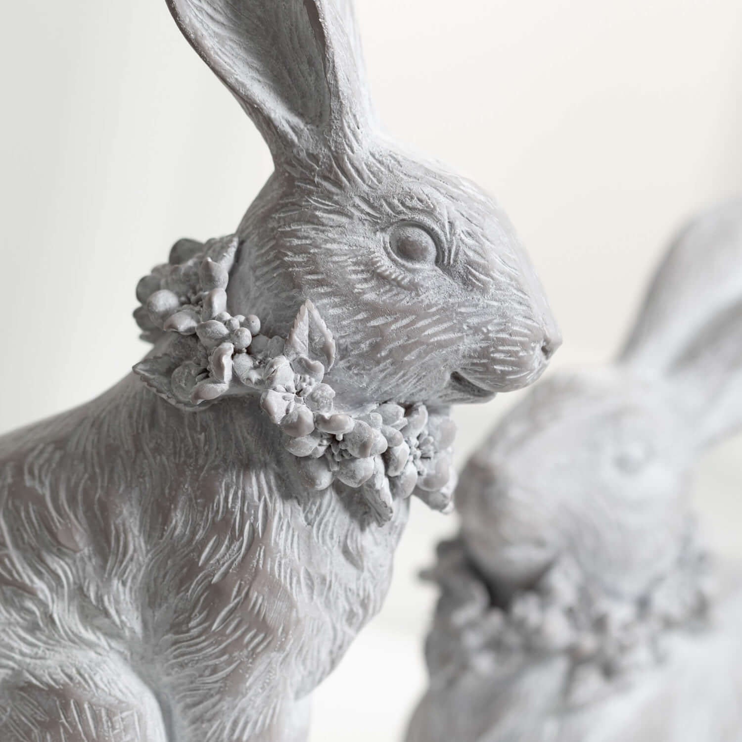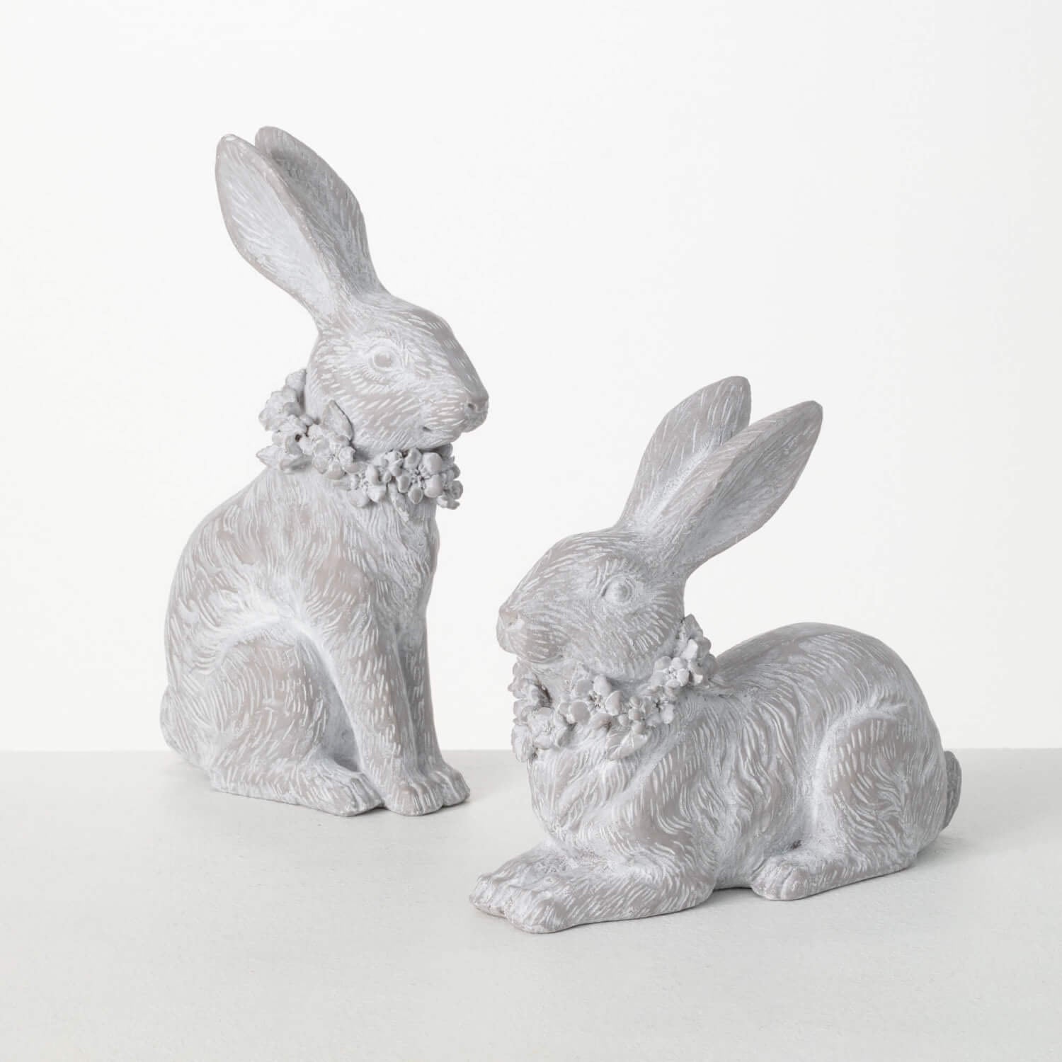 Celebrate the beauty of Spring with our Bunnies with Floral Wreaths Set! These two adorable bunnies are adorned with stunning floral wreaths, adding a touch of charm to any decor. With their beautiful whitewash design, they are perfect for bringing a touch of nature into your home.