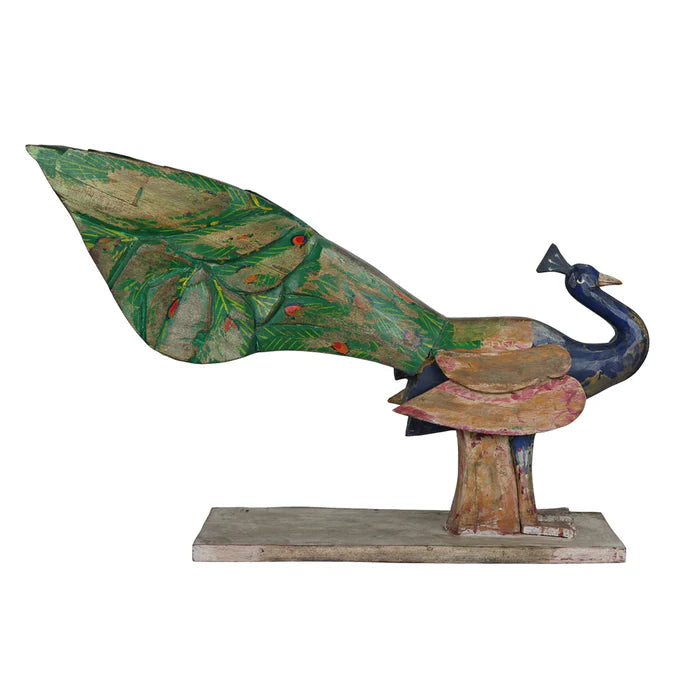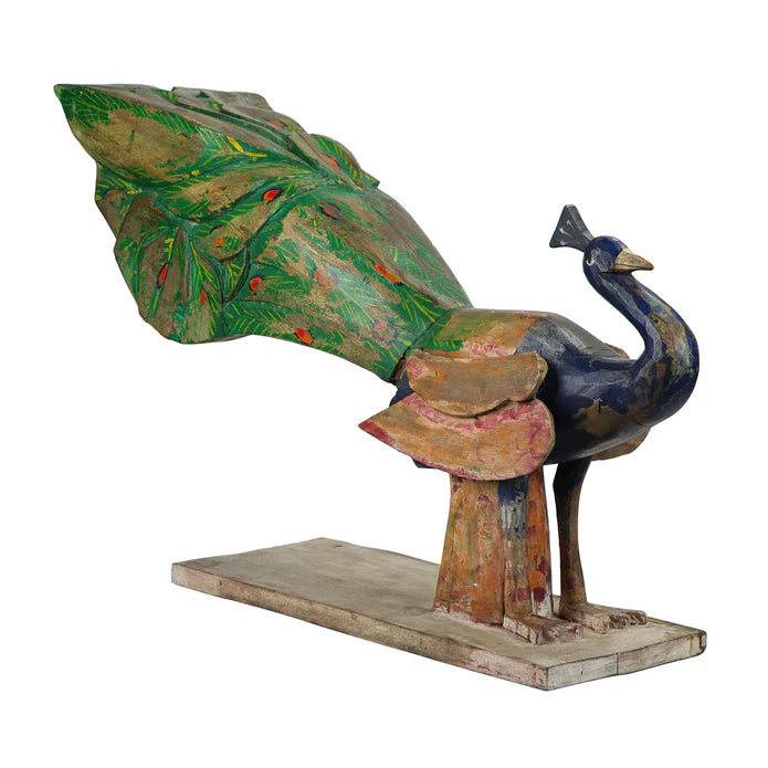 Transform your space with our stunning hand-carved and hand-painted wooden peacock accent. The intricate details and vibrant colors of this piece will add a touch of drama and personality to any room. Elevate your decor with this unique and eye-catching statement piece.