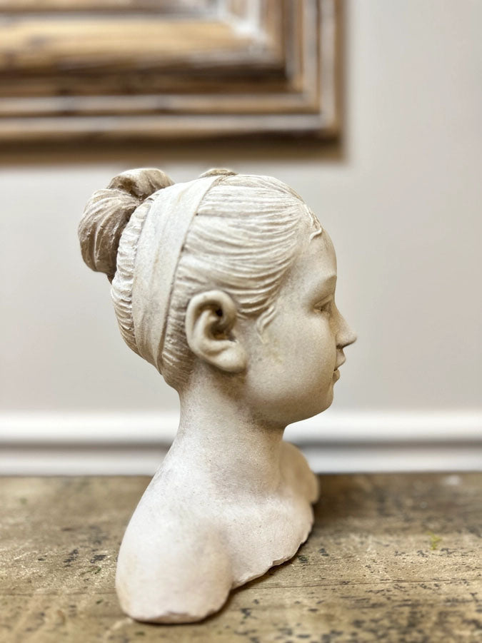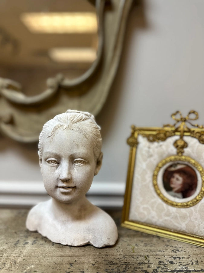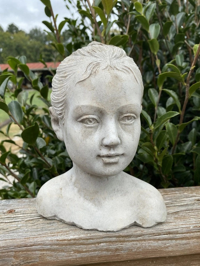 Transform any space with our hand-cast Cement Girl Head statue. With intricate details in the hair, mouth, nose, and eyes, this piece adds character and charm to any setting. Use it indoors or outside for a unique touch.
