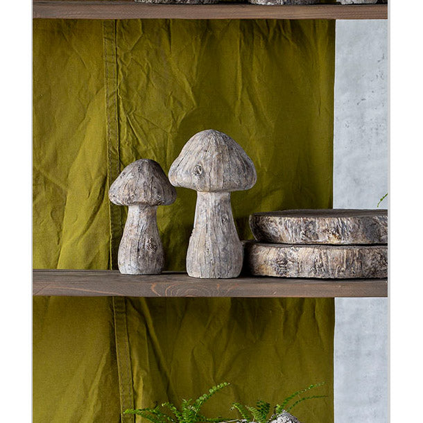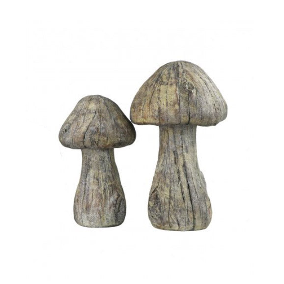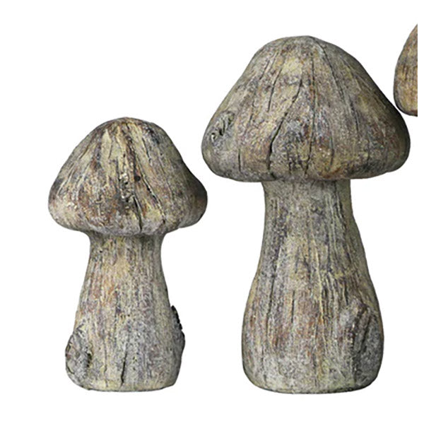 Our whimsical cast concrete garden mushroom evokes a Alice in Wonderland aesthetic. A distinct antique finish gives each one a one-of-a-kind look. Perfect in the garden or add to a shelf in your home for a fun look.