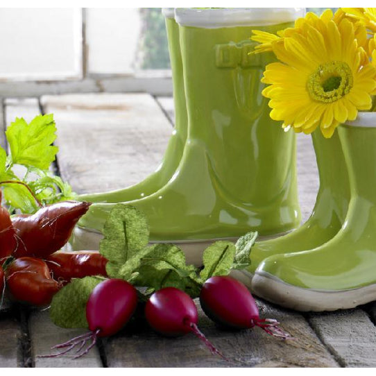 How wonderful would these look at a place setting? They would also look amazing in a bowl or basket on your kitchen counter for a beautiful decorative look. They look amazingly realistic! They come in a bag of 6 radishes.