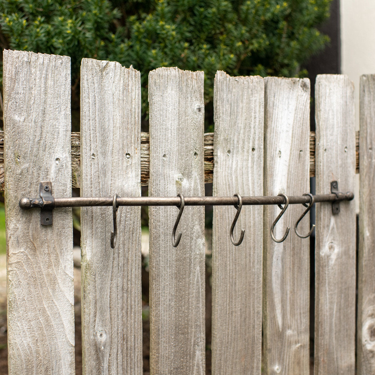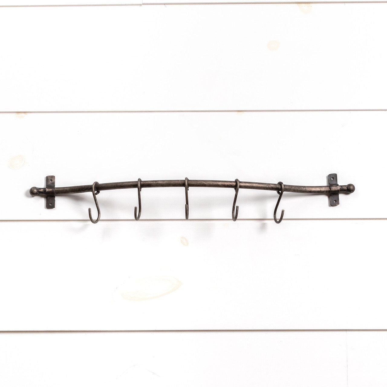 This Grey Metal Curved Rack with 5 Hooks is perfect for so many things. Use in the kitchen to hang pots, in the bath for towels or in the garden shed for tools. The weathered look only adds to its charm.