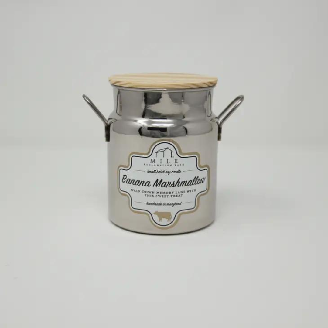 Repurposed classic milk churn becomes a beautiful soy candle. The Milk Churn Candle contains 100 percent American grown soy wax and a lead-free cotton wick. Available in several classic Farmhouse scents. Each scent specifically blended to evoke a memory of living on the farm. Each candle contains 12.5 ounces of wax and produces a burn time of approximately 80 hours.