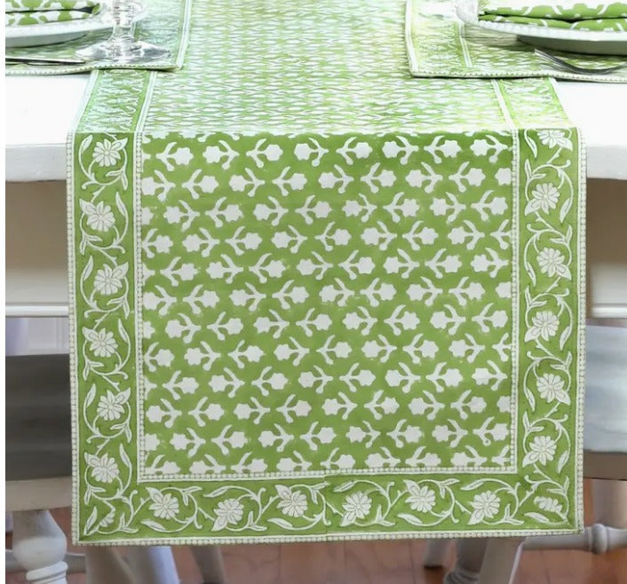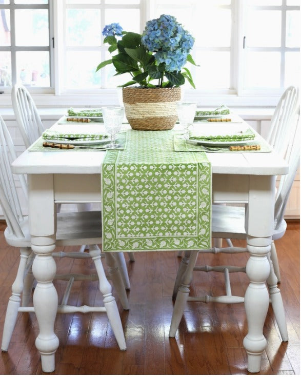 The Charlie table runner is a versatile textile. Use one on your table, along a buffet, or over a dresser – wherever you want a pop of color and pattern!