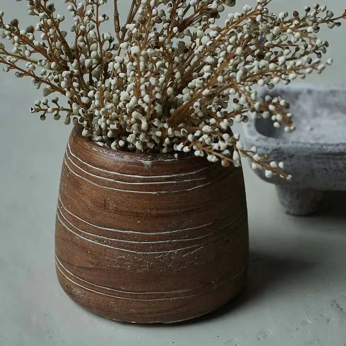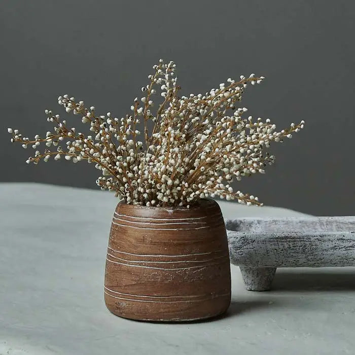 In one of our all-time favorite shapes with unique textural brushstroke details, the Tolana Vase is such a beautiful piece for any home in need of a centerpiece. Made from ceramic, the materiality showcases its simple yet elegant design whilst its soft brown hues radiate warmth and character almost making the piece appear to be carved from wood. Take it even further with a large bunch of foliage or colorful flowers.