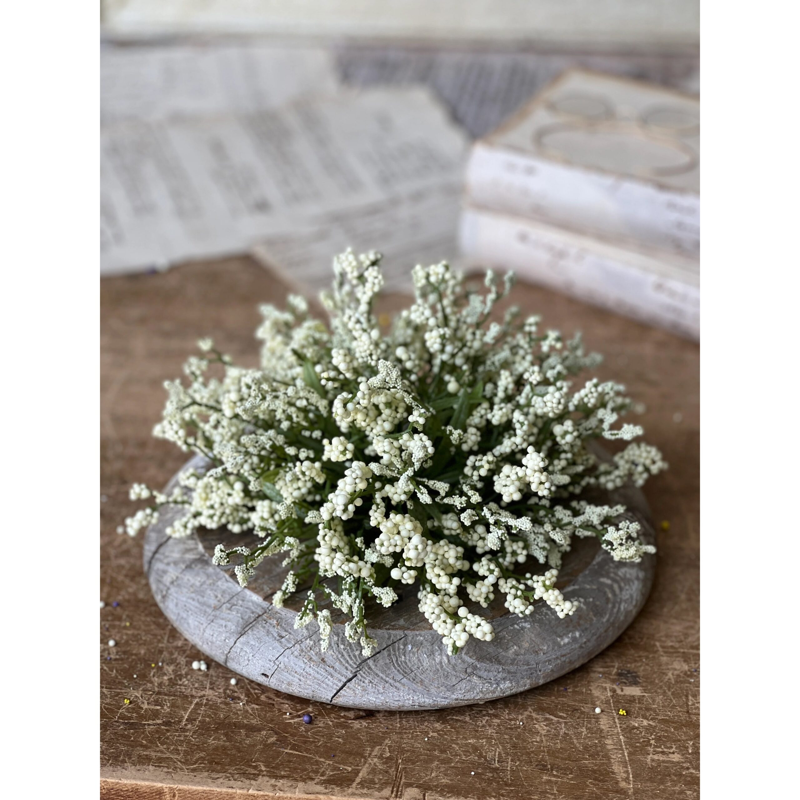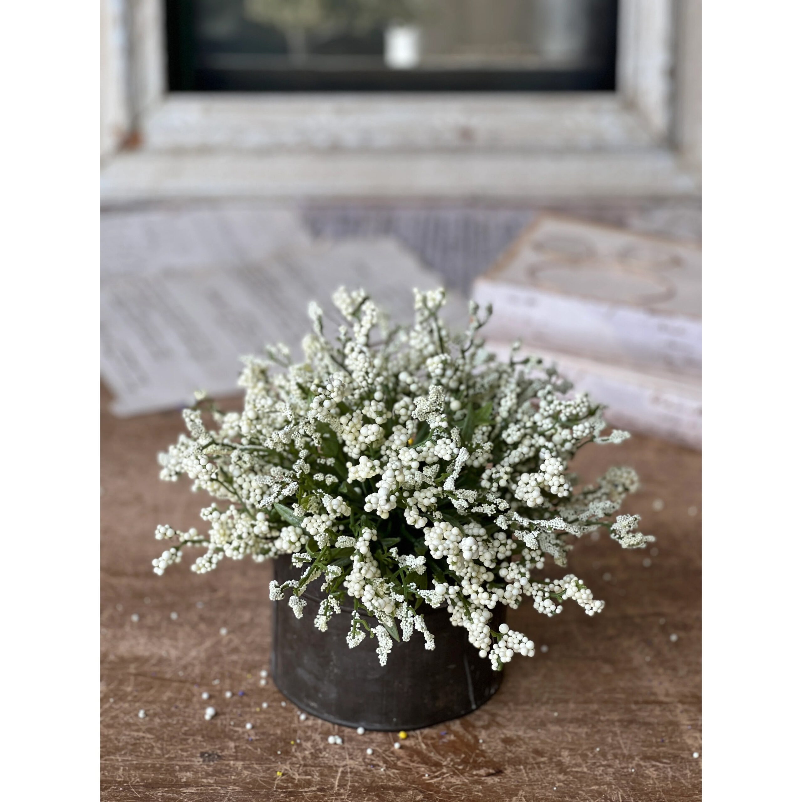 Cream color clusters of bubble berries are made even more lively with the addition of branching stems bedecked with tiny bubble berries. An eye-catching piece that is sure to be a new favorite!