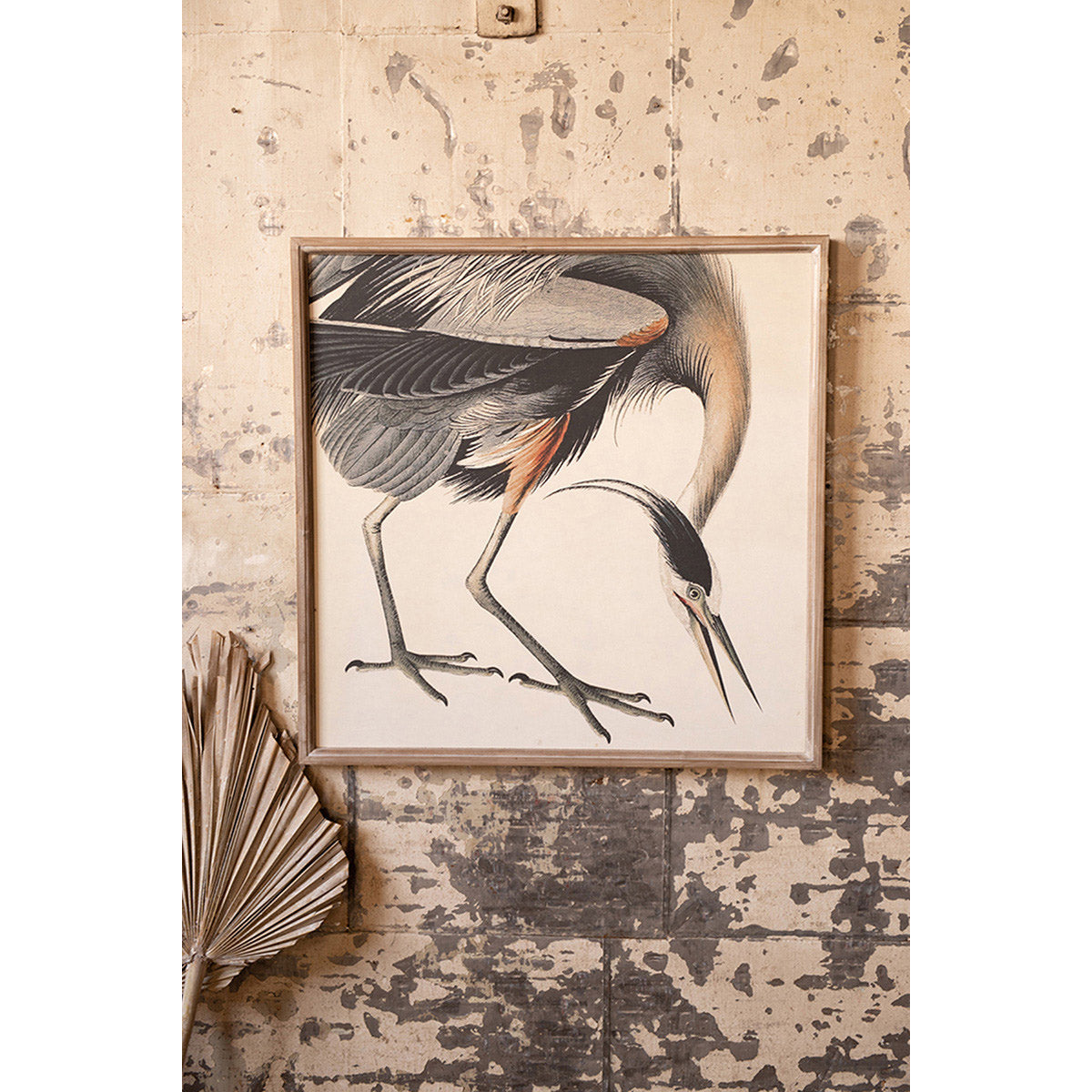 This large, graceful crane art print offers a serene and earthy presence that is sure to introduce the natural beauty of the outdoors to your decor. Hang in an entryway or bedroom for a natural coastal feel.