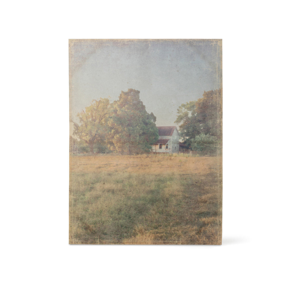 Featuring original photography, which was reinterpreted in watercolor, then printed and antiqued to add depth, this lovely piece provides a calm depiction of farm life. Perfect for a bedroom, kitchen or living room wall