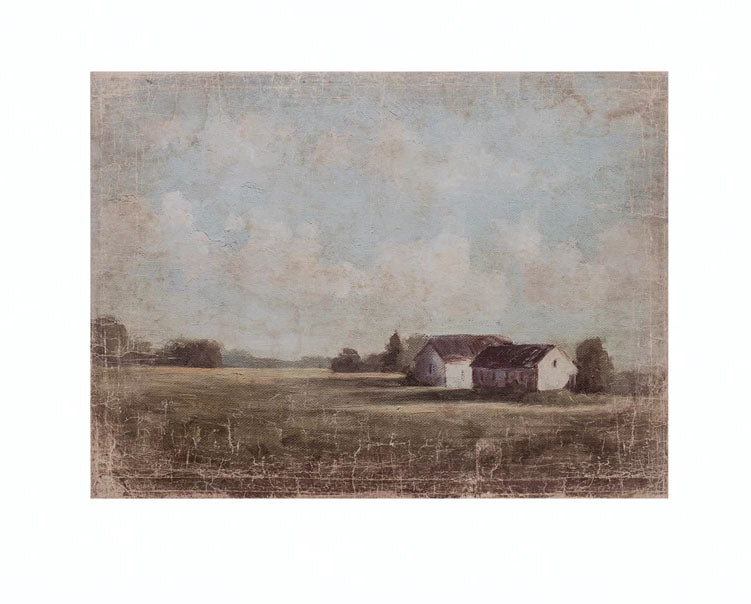Transform your living space with our Farm Landscape Weathered Canvas Wall Art. Crafted with exquisite detail, this beautiful piece resembles a lost canvas found in an attic. Its simple design adds a touch of sophistication to any room. Elevate your home decor with this exclusive and timeless artwork.