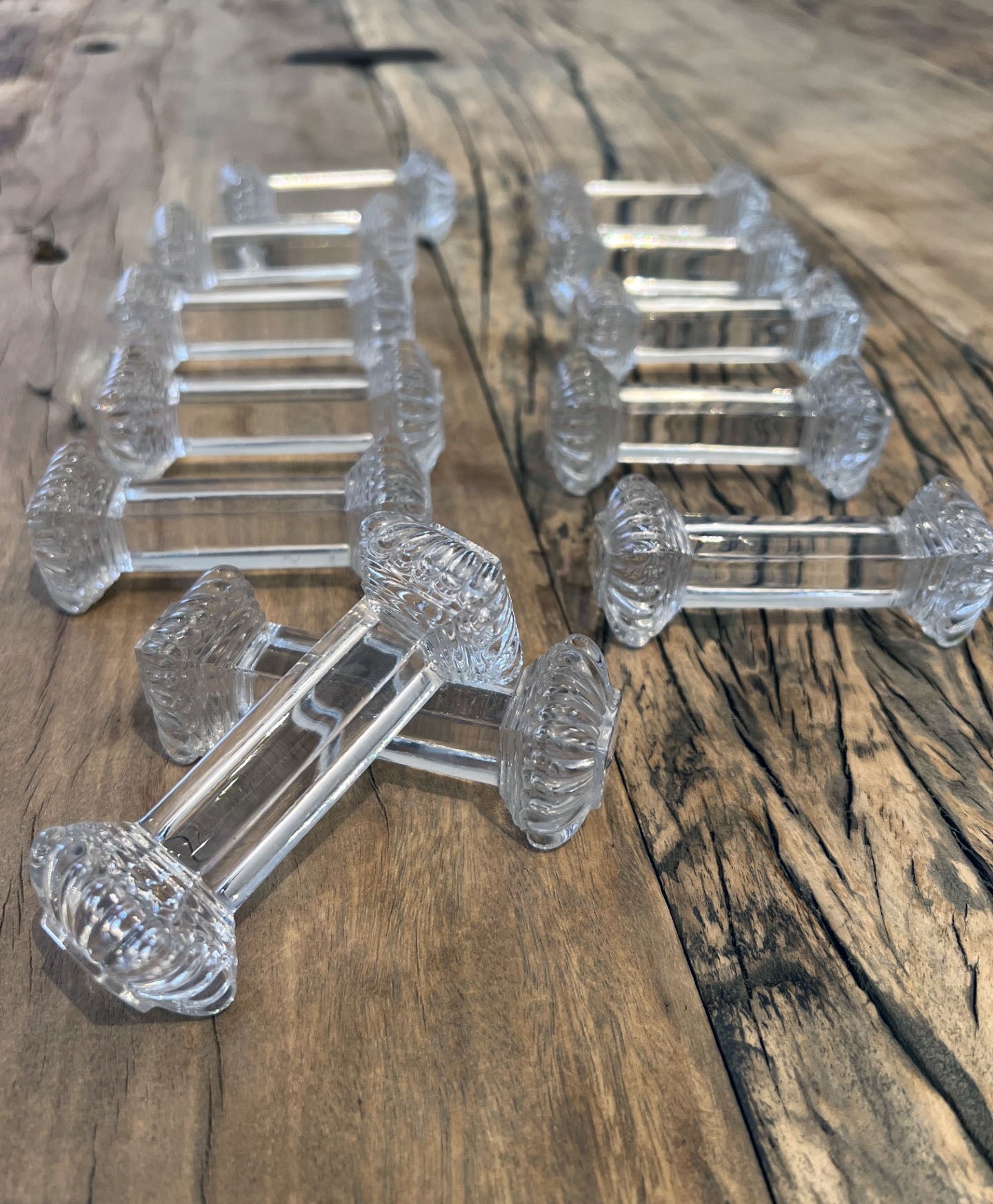Add a touch of elegance to your dinner table with our Found Glass Knife Rest. Each one was discovered in France and features a beautiful vintage glass design. Perfect for both practical use at place settings and for displaying special items like a wedding cake knife. Elevate your dining experience today!