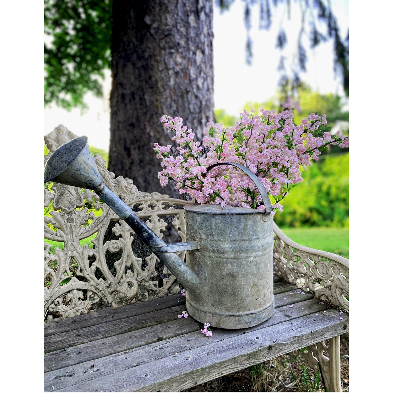 Our vintage watering cans with spout were used by Hungarian villagers to tend to their gardens during the warm summer months. Made of galvanized zinc, each one is unique in style and condition.