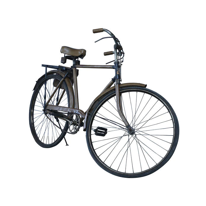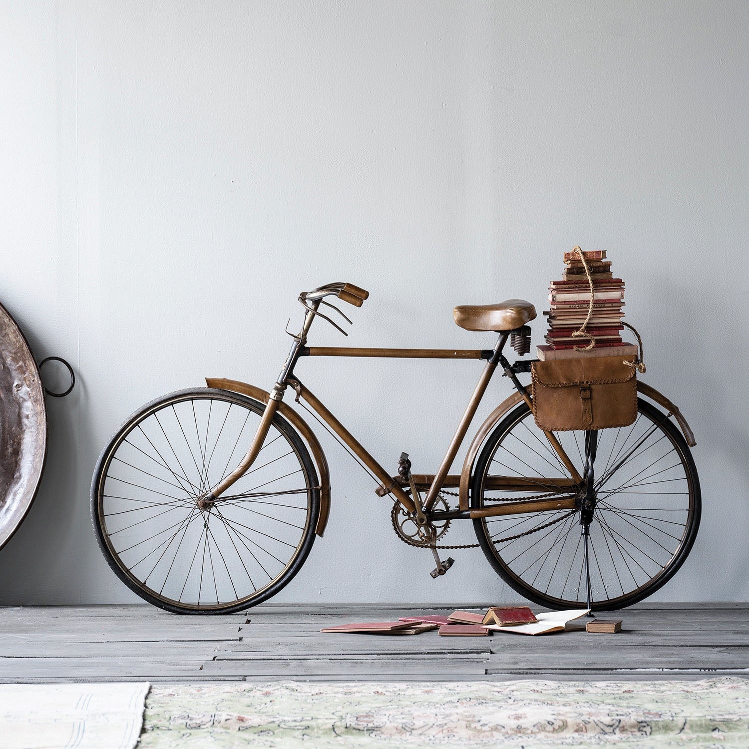 Bring a touch of nostalgia to your home with the Found Leatherman Bicycle. The bike is covered in leather along with the leather saddle bag. Built with comfort in mind, this vintage inspired bike features a cushioned buffalo leather seat and a functioning kickstand. Use as a decorative piece making it an elegant and exclusive addition to any room.