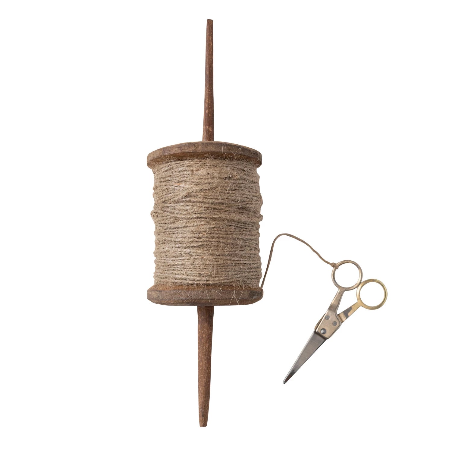 Found Wood Spool w/Jute & 4″L Scissors, Natural & Brass Finish
