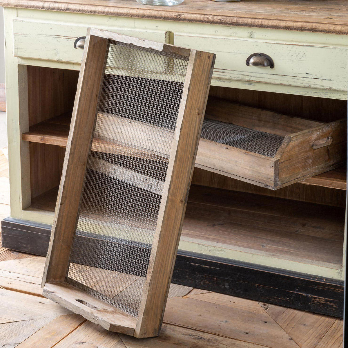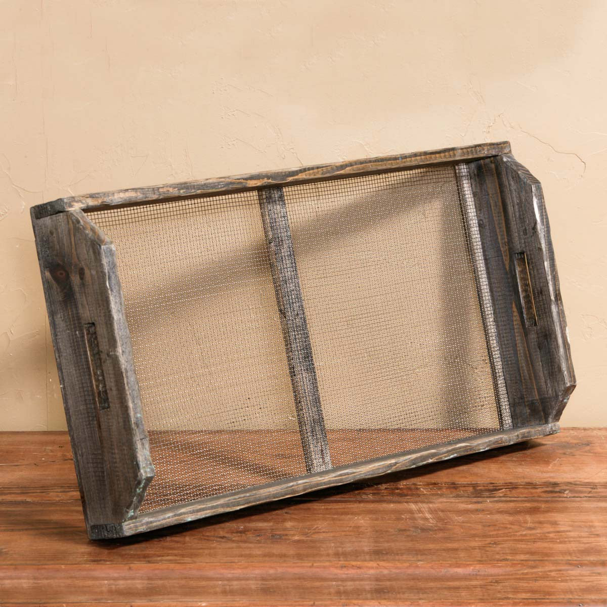 Ideal for display, this French nursery flat features an aged wooden frame and wire screen bottom. Perfect for use in the garden or use in the house for decor, displayed with flowers or books.