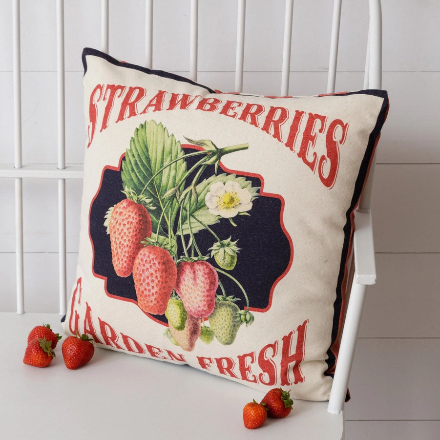 Add a touch of sweetness to any room with the Garden Fresh Strawberry Pillow! Featuring a charming strawberry design on the front and a cozy red gingham plaid back, this pretty pillow is perfect for any kitchen, patio, or living room. Bring a pop of color and fun to your decor!