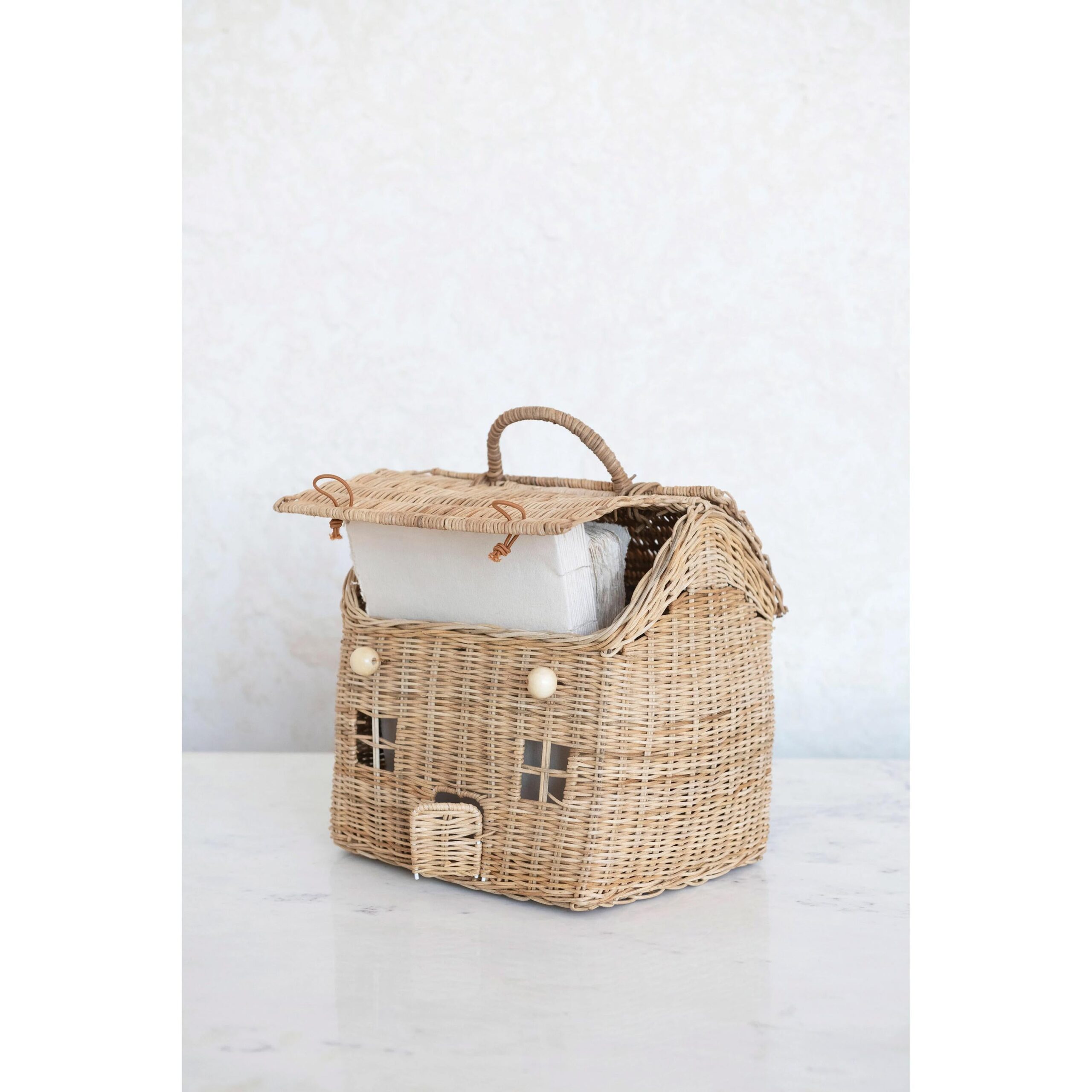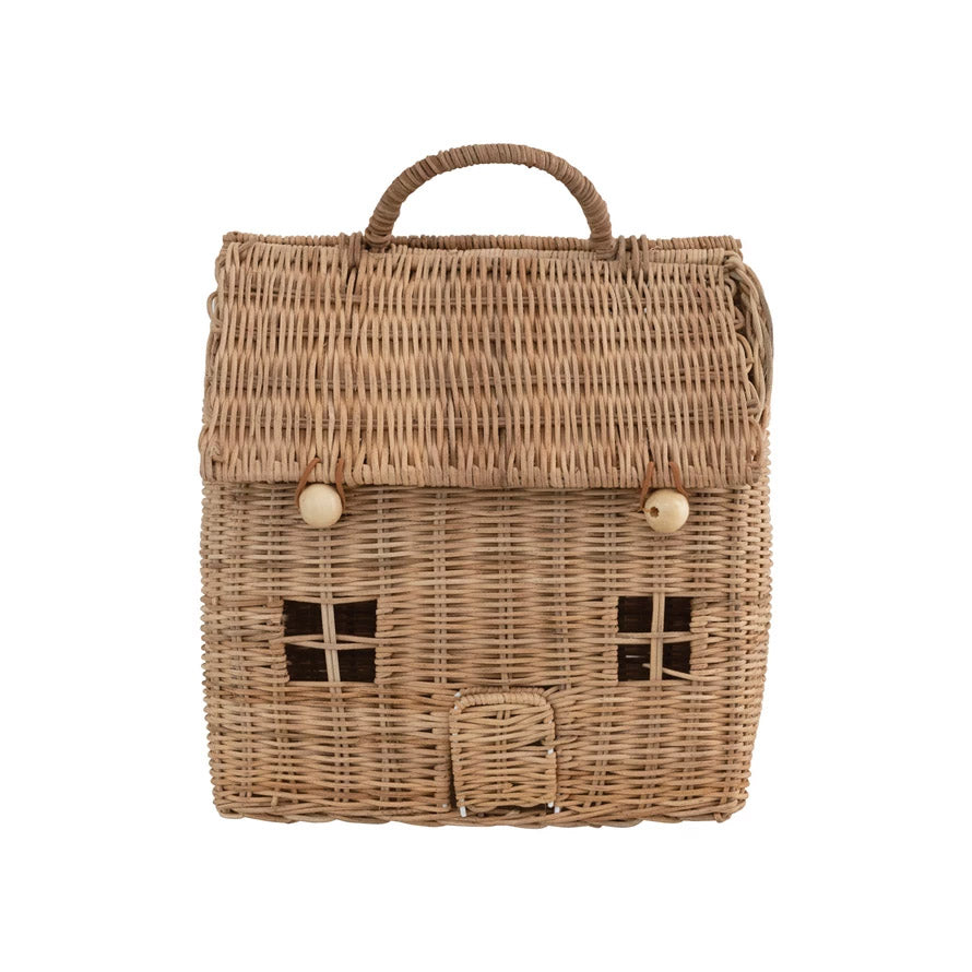 10″L x 10″W x 13″H Hand-Woven Rattan House Basket w/ Handle & Closures, Natural