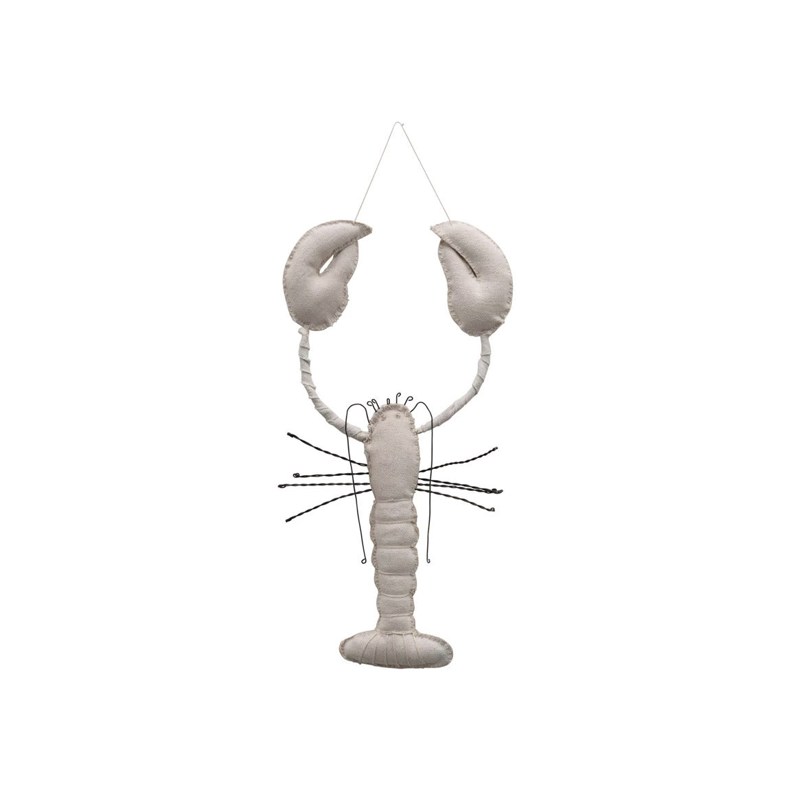 Handmade Hanging Recycled Canvas & Wire Lobster, Cream Color