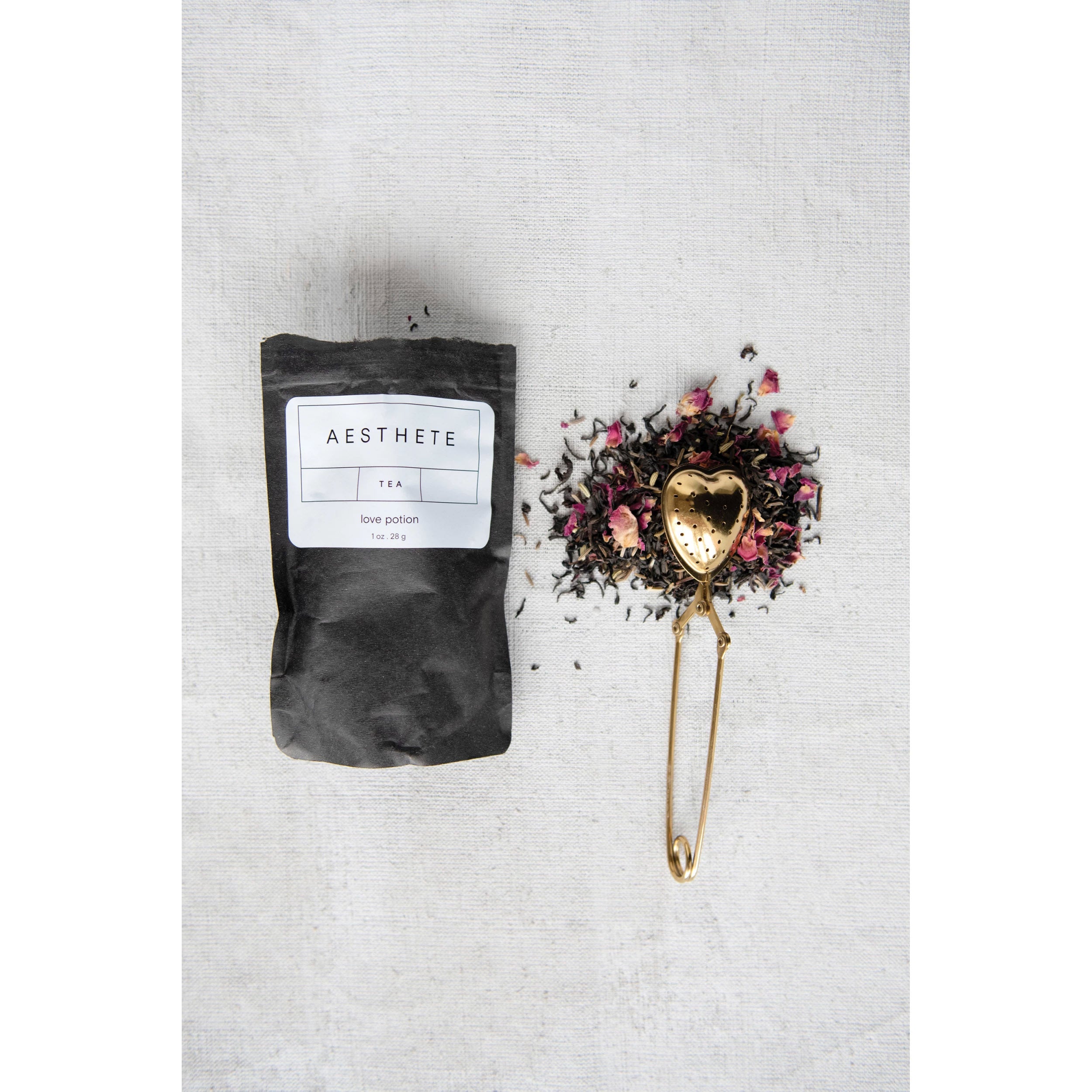Stainless Steel Heart Shaped Loose Tea Strainer, Gold Finish