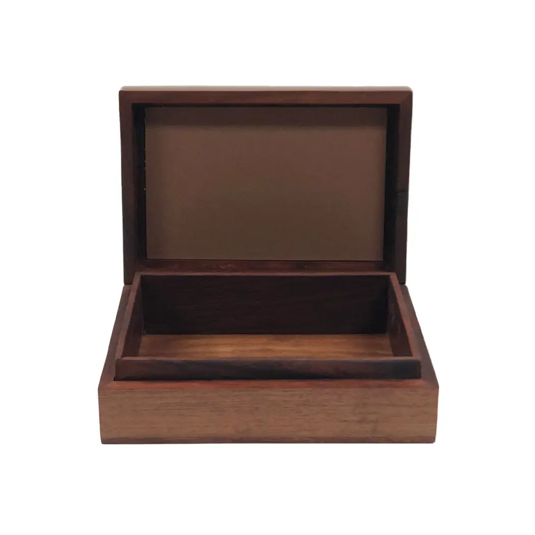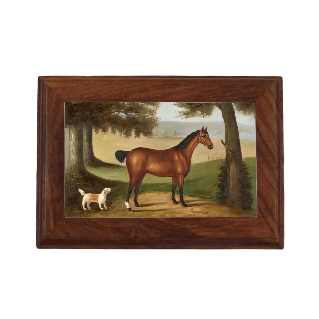 Our Horse and Dog Print Jewelry box is the perfect size for your desk, nightstand, or tabletop. You can use it for jewelry or other small items. It is made of sheesham wood and features a hinged lid. The box is perfect for a gift for your favorite horse lover or equestrian.
