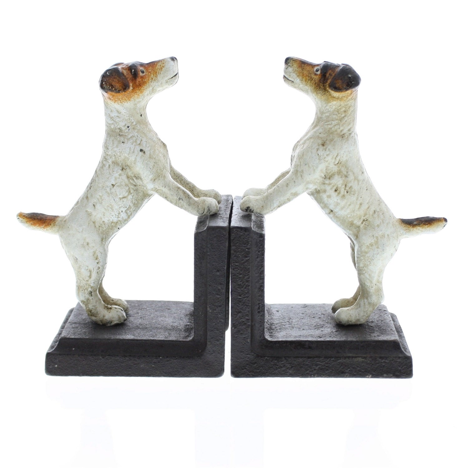 The Jack Russell Bookends animate an energetic Jack Russell Terrier who is sharp and at attention-ready to delight all who enter the room. These delightful pieces would look amazing on a bookshelf in an office or bedroom.