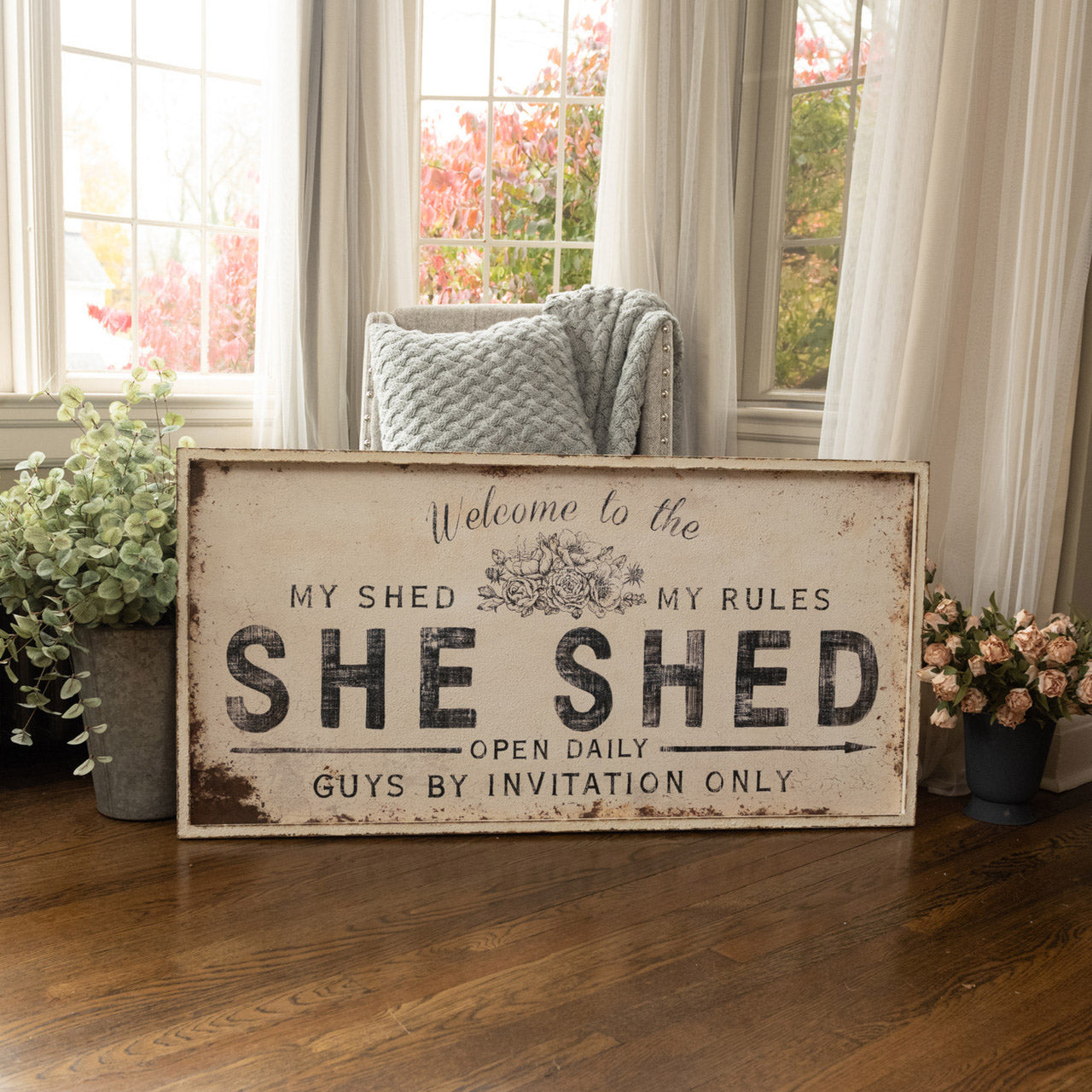 Declare your space with this stunning Large She Shed Sign. Crafted with high-quality materials, this large sign is an elegant white and black finish, perfect for adding an exclusive touch to your space. An ideal addition to the shed, or a reserved for you room in the house.