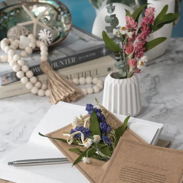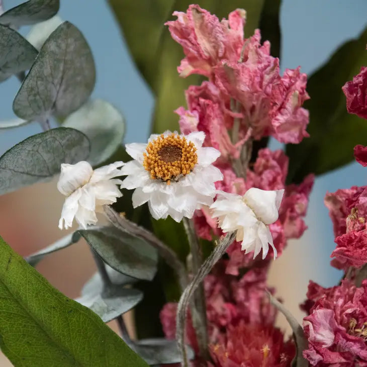 This beautiful mini bouquet was designed using an assortment of dried flowers to create this charming and petit mini bouquet arrangement. Each bouquet is designed and handcrafted in California and is a perfect decorative accent to your tablescape or vignette also perfect to add to a gift as a little something extra.