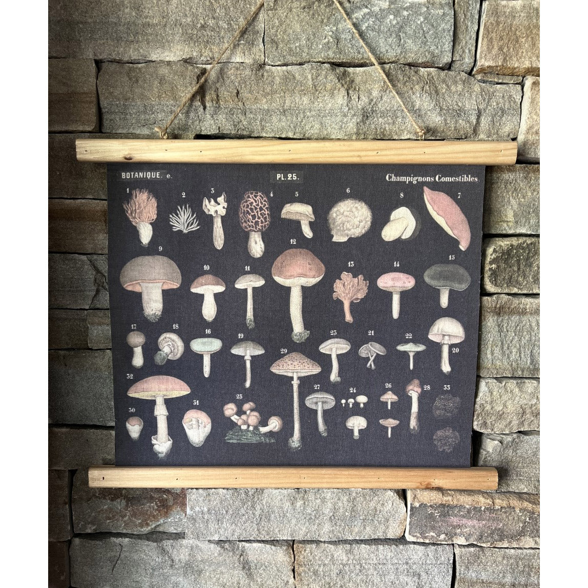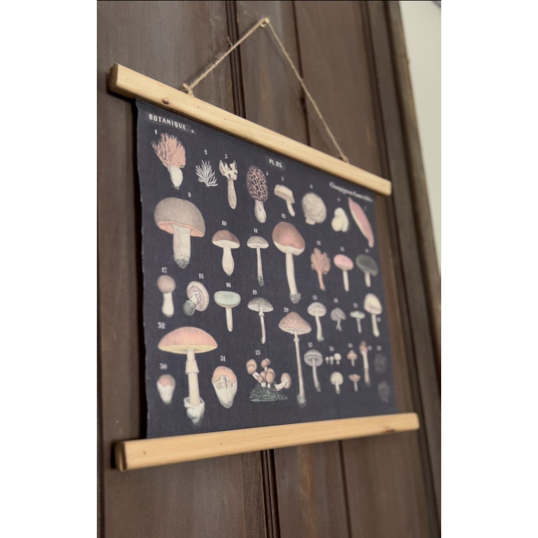 This wonderful scroll would be a fun accent on any wall. Made of canvas and featuring different types of mushrooms, it truly is a unique piece.