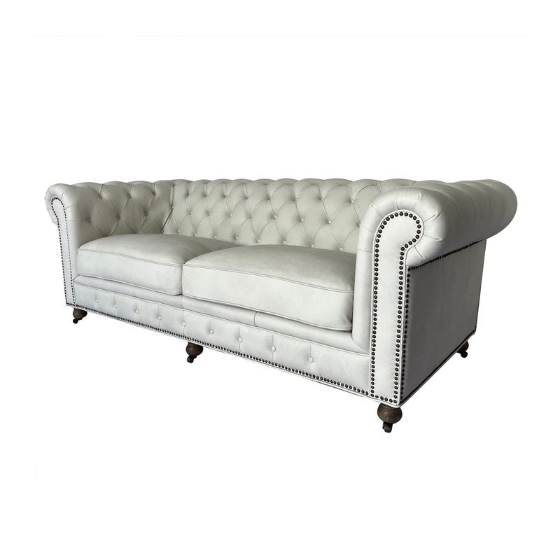 Indulge in luxury with our Off-White Chesterfield Leather Sofa. Crafted with supple, soft leather, it’s the quintessential classic piece that will invite you to sit and stay a while. With its warm off-white hue, it’s the perfect addition to any elegant and exclusive space.