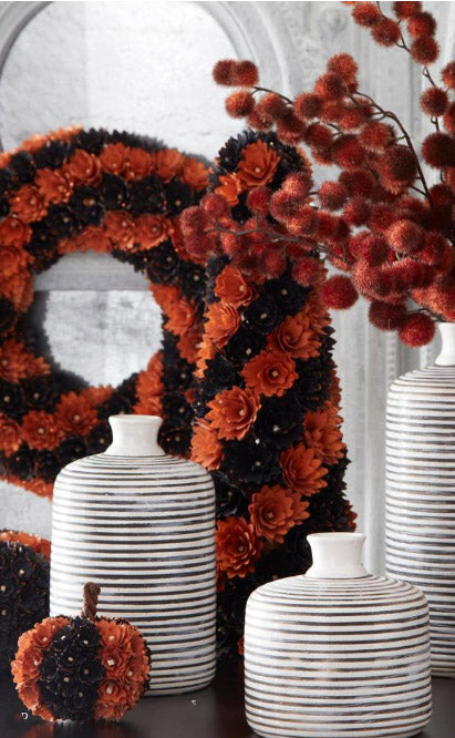 Make your home festive with this eye-catching Orange and Black Billy Ball Spray. With its 31″ stem, it’s perfect for creating stunning displays that capture the feeling of fall and Halloween. Fill vases with this beautiful spray to give any room a cheerful touch.