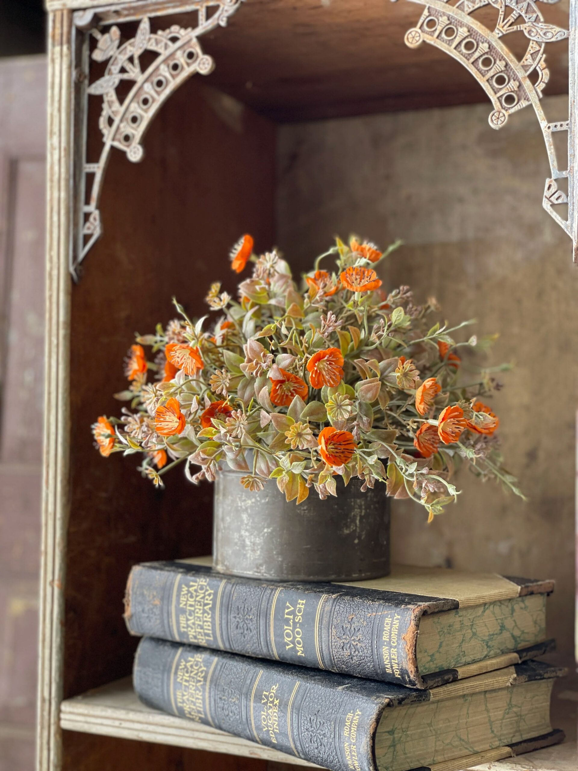 Pumpkin Julep Blooms feature multi-petaled, cuplike flowers that top masses of green leaves with seed head shoots. Perfect for bringing a pop of color into your home. Add to a vase, planter or just sit on a table for a beautiful cottage like look.