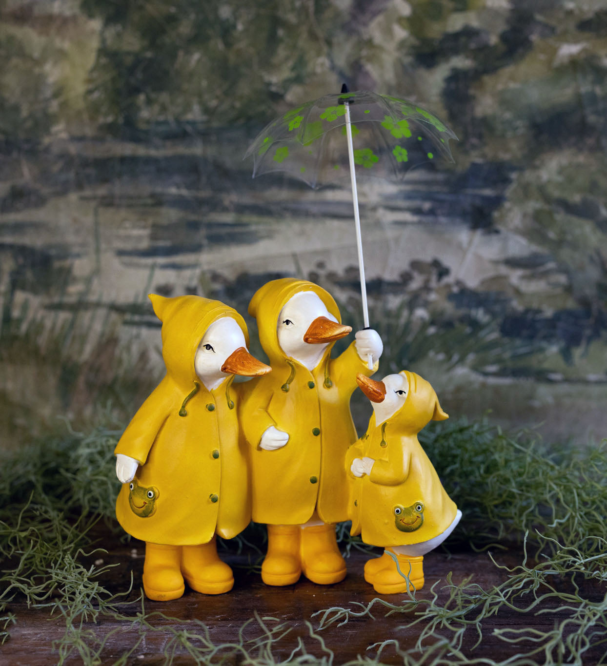 Introducing Rainy Day Ducks – Rainy Day Friends! This trio of cute ducks will brighten up your space on a rainy day. With their adorable raincoats and details, they will add a touch of whimsy to your spring decor. Let these little ducks bring a smile to your face!