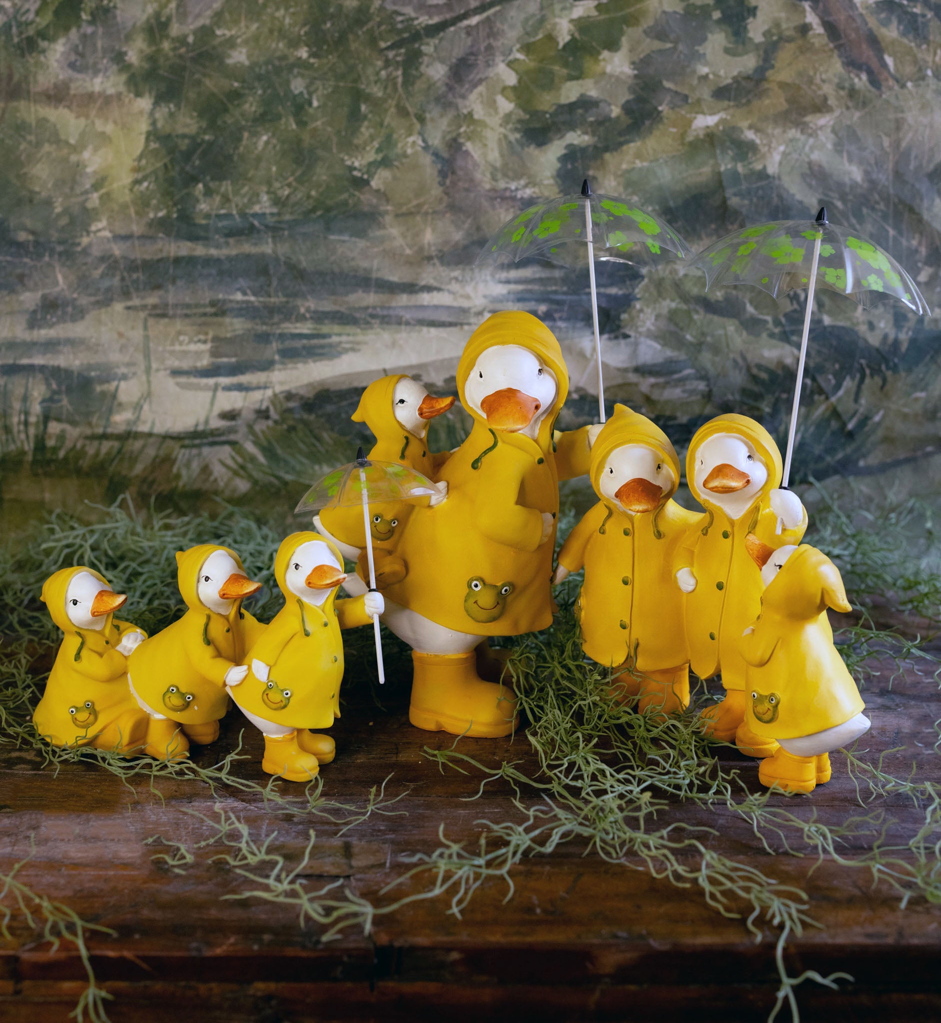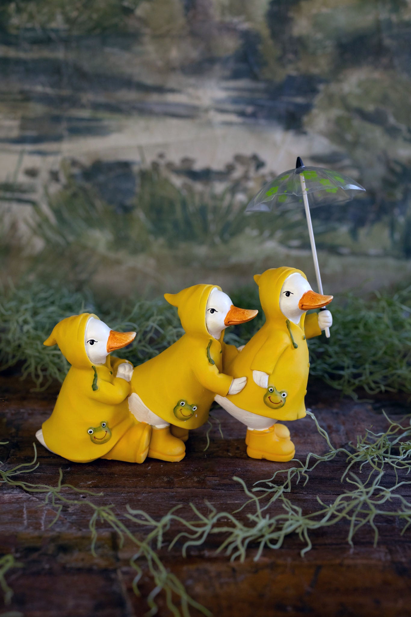 Introducing Rainy Day Ducks – Rainy Day Friends! This trio of cute ducks will brighten up your space on a rainy day. With their adorable raincoats and details, they will add a touch of whimsy to your spring decor. Let these little ducks bring a smile to your face!