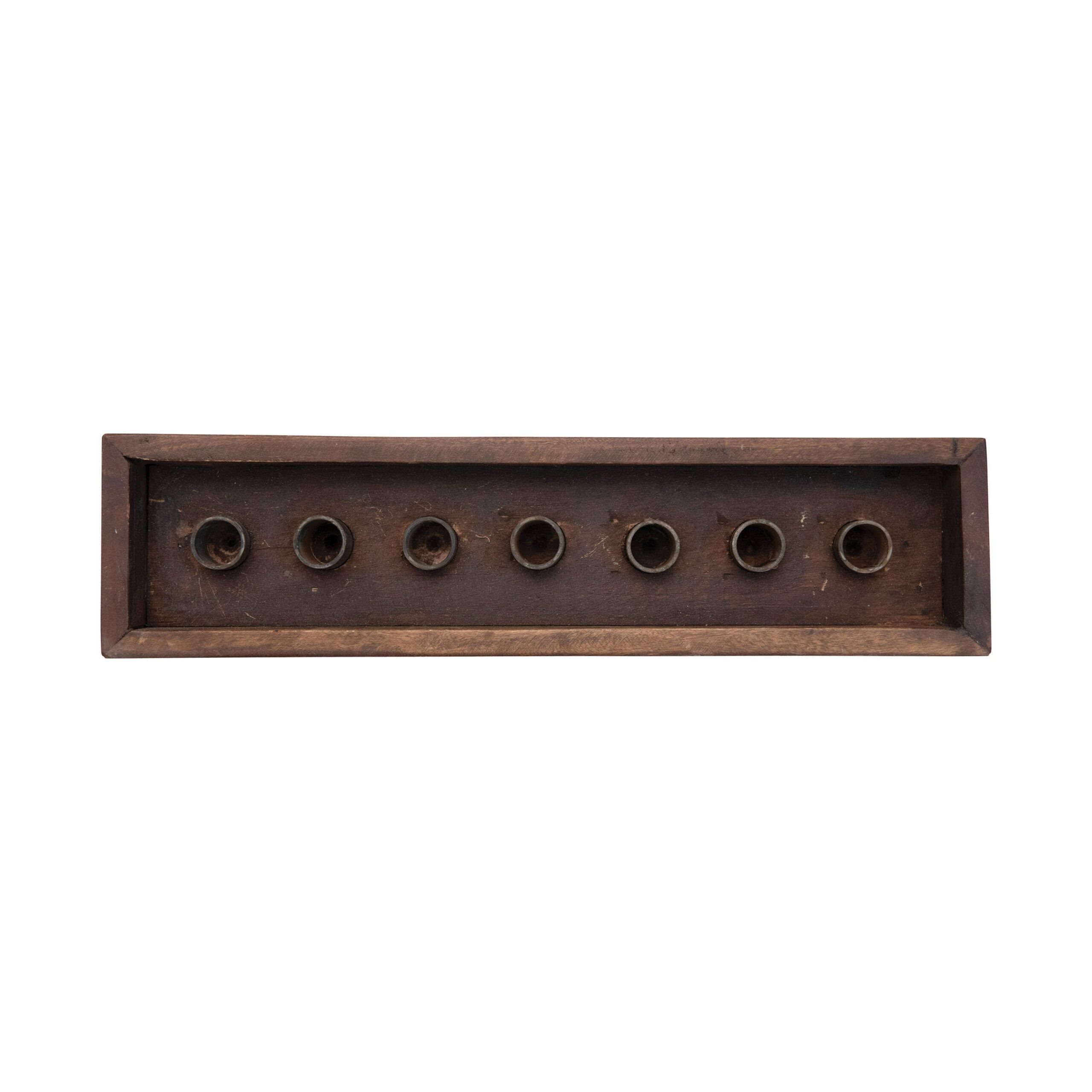 Reclaimed Wood and Metal Tray with Taper Holders (Holds 7 Tapers)