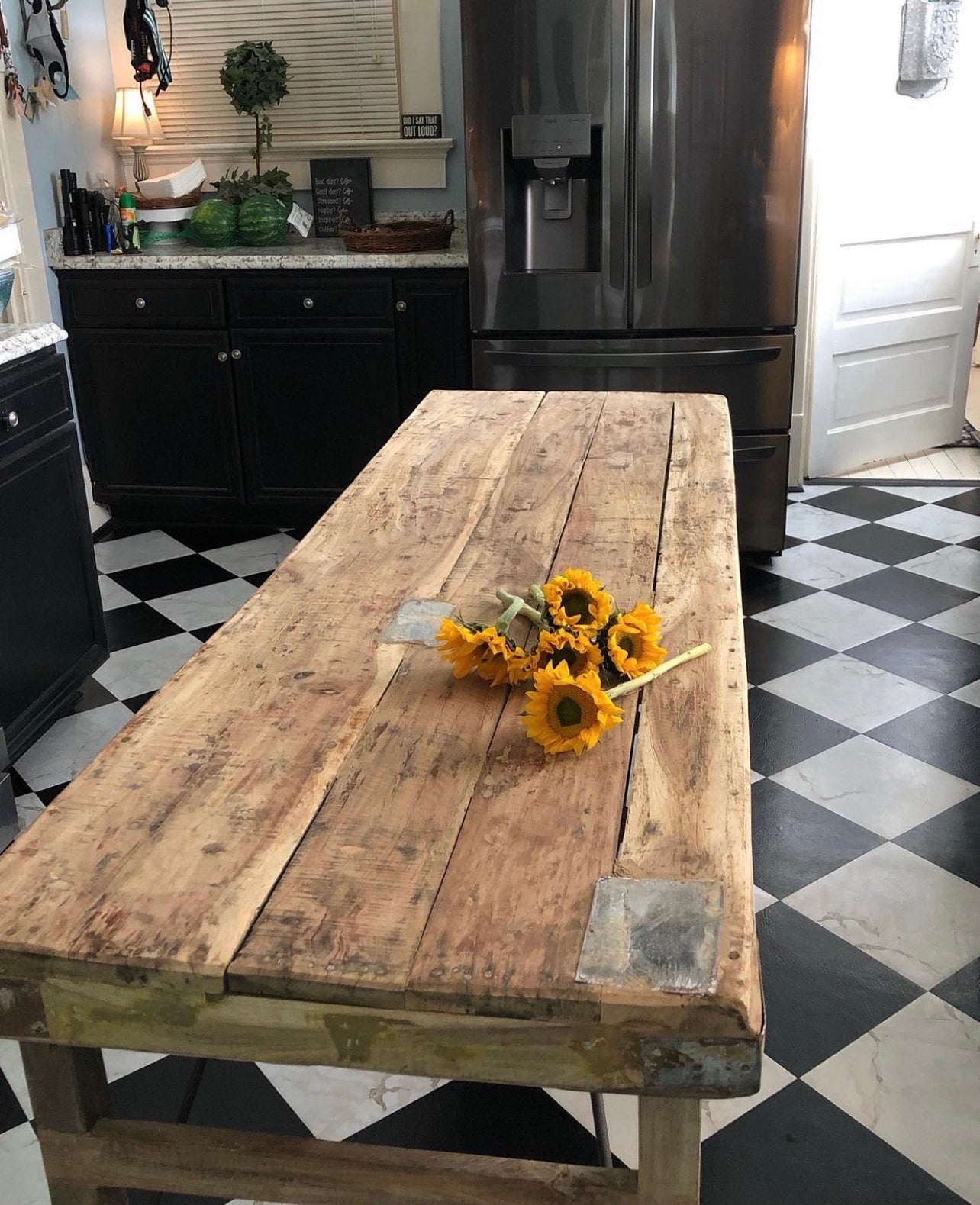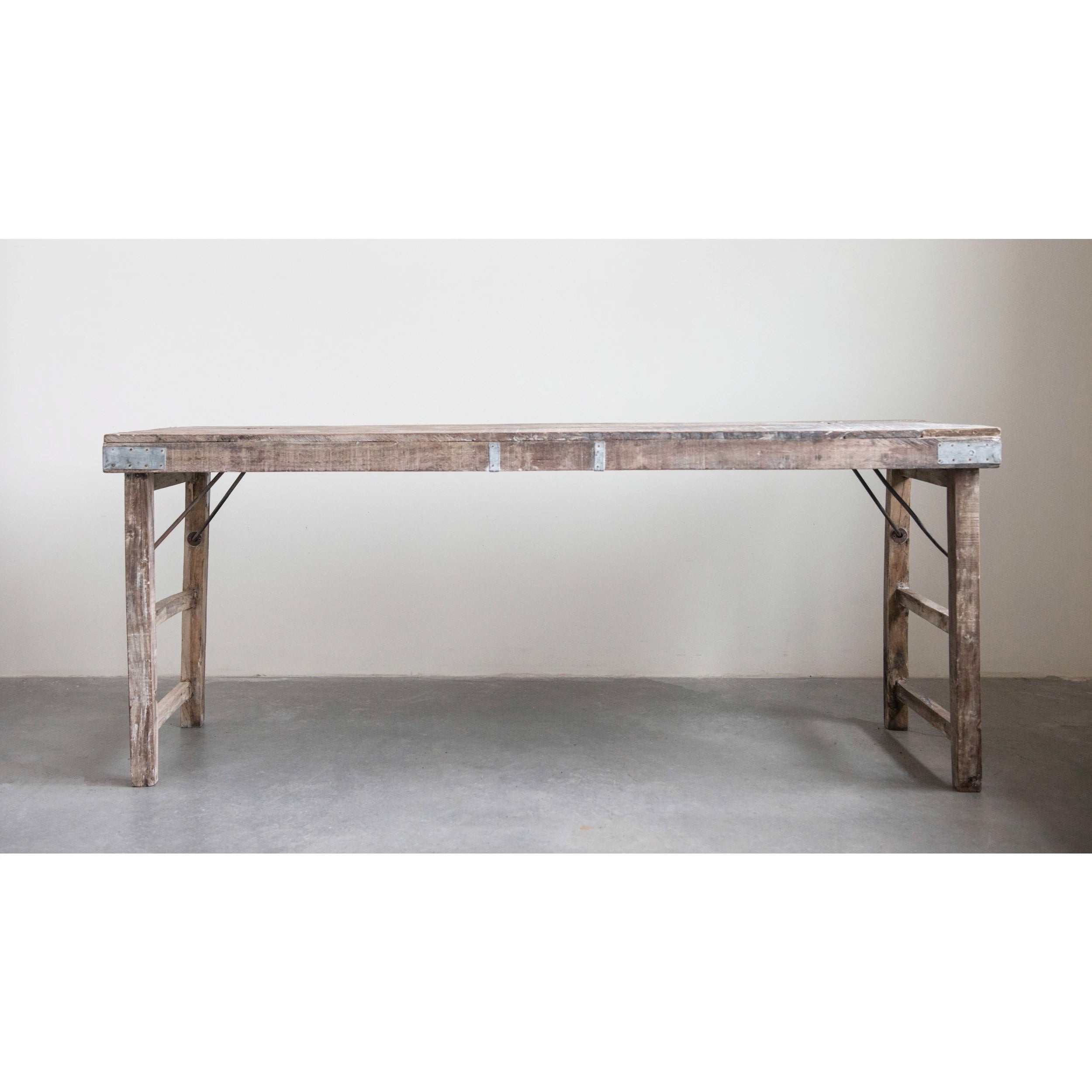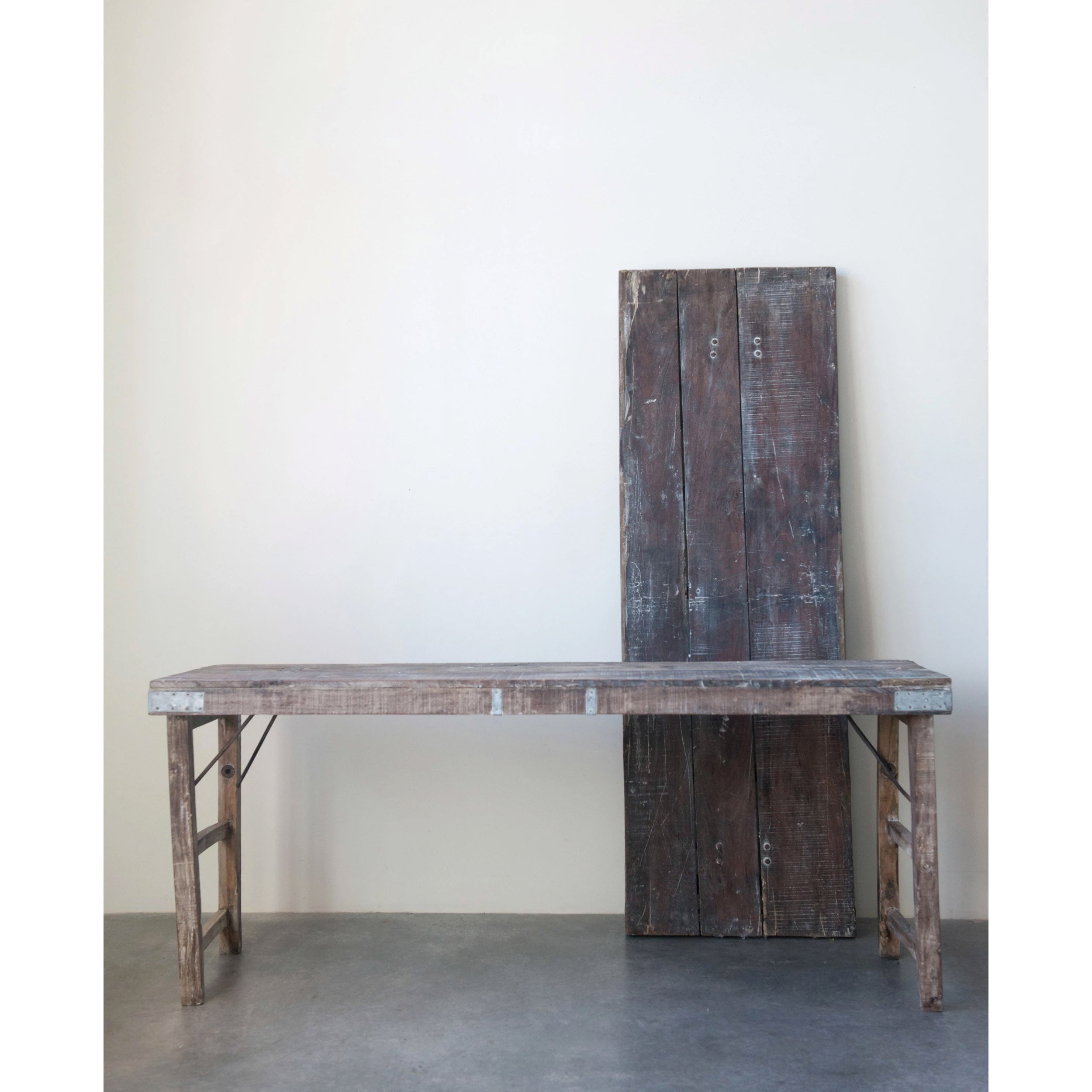 68″L x 22″W x 31″H Reclaimed Wood Folding Table w/ Tin Patches